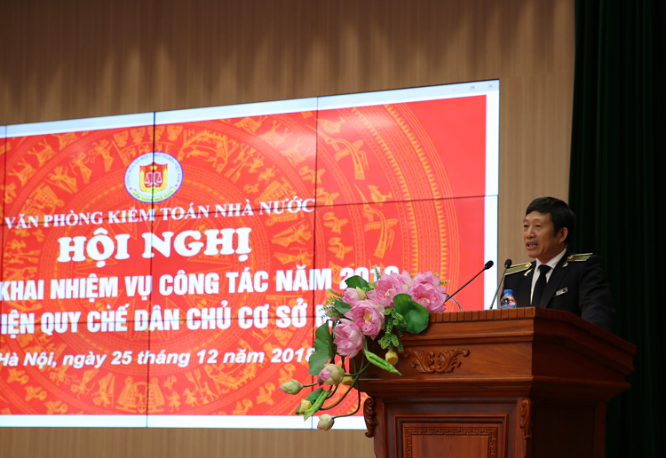 Phát biểu chỉ đạo Hội nghị, Phó Tổng Kiểm toán nhà nước Nguyễn Quang Thành ghi nhận và biểu dương những thành tích Văn phòng KTNN đã đạt được trong năm 2018. “Văn phòng đã hoàn thành xuất sắc nhiều công việc quan trọng của Ngành, đáp ứng được nhiệm vụ Lãnh đạo KTNN giao. Sự cống hiến đó đã đóng góp một phần không nhỏ trong thành tích chung của toàn Ngành trong năm 2018” – Phó Tổng Kiểm toán nhà nước nói.