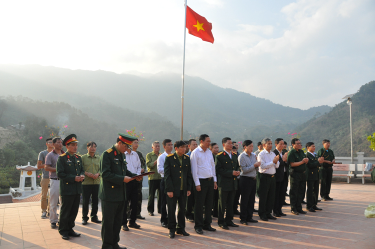 Cùng ngày, Đoàn công tác cũng đã đến dâng hương tưởng niệm các anh hùng liệt sĩ tại Chuông đài hương thuộc cao điểm 468 (xã Thanh Thủy, huyện Vị Xuyên, tỉnh Hà Giang).