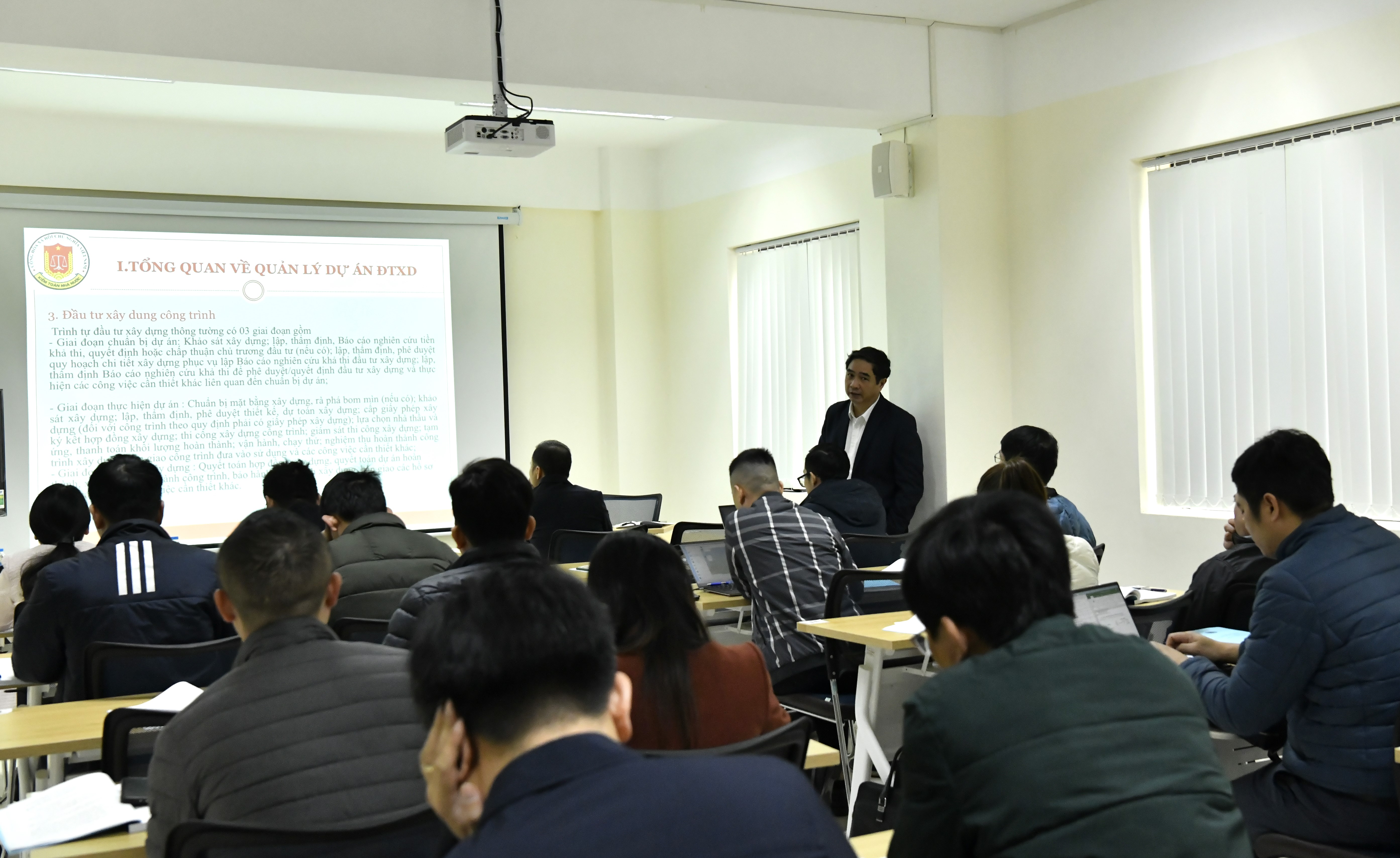 Các học viên được bồi dưỡng kiến thức tổng quan về quản lý dự án đầu tư xây dựng tại Lớp bồi dưỡng kỹ năng kiểm toán dự án đầu tư xây dựng công trình - cấp độ 1