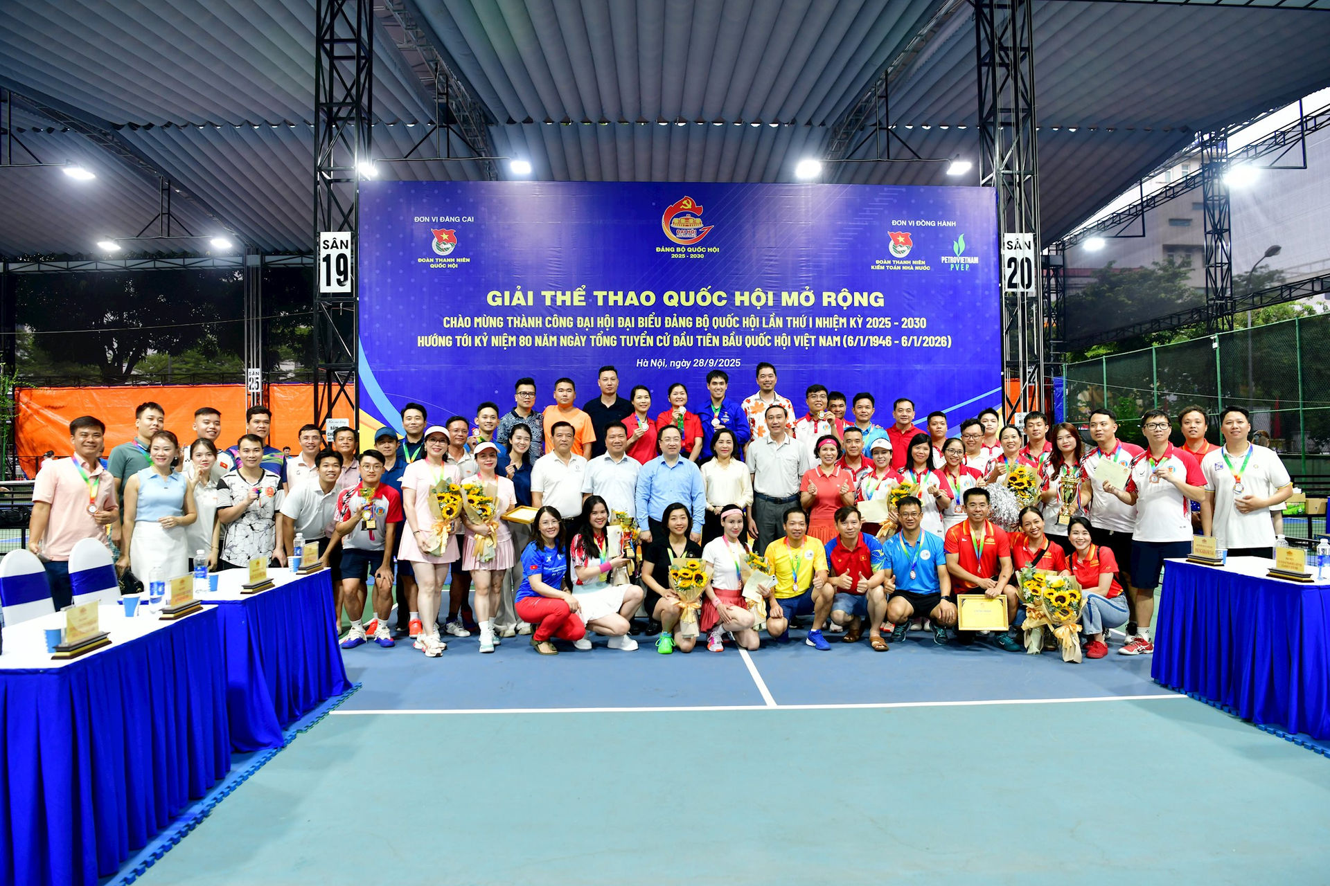 Tổng kết Giải, Bí thư Đoàn Thanh niên Quốc hội Nguyễn Thị Kim Anh - Trưởng Ban Tổ chức Giải - cho biết, Giải thể thao Quốc hội mở rộng, chào mừng thành công Đại hội Đảng bộ Quốc hội lần thứ I, nhiệm kỳ 2025-2030, hướng tới kỷ niệm 80 năm ngày Tổng tuyển cử đầu tiên bầu Quốc hội Việt Nam đã diễn ra trong không khí hết sức tươi vui, phấn khởi và đoàn kết.