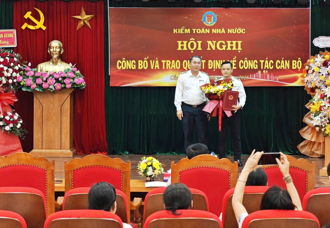 Thay mặt Lãnh đạo KTNN, Phó Tổng Kiểm toán nhà nước Trần Minh Khương đã trao Quyết định bổ nhiệm và tặng hoa chúc mừng đồng chí Phạm Quang Hưng; đồng thời đề nghị đồng chí Phạm Quang Hưng sớm nắm bắt nhiệm vụ và tình hình địa bàn kiểm toán, phát huy năng lực, kinh nghiệm bản thân, chủ động cùng tập thể lãnh đạo đơn vị xây dựng tập thể vững mạnh, kỷ cương, trách nhiệm và hiệu quả;