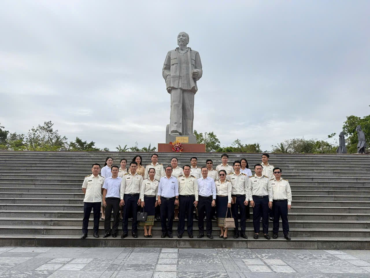 Lãnh đạo, công chức KTNN khu vực II chụp ảnh lưu niệm với công chức, kiểm toán viên KTNN Lào tại Tượng đài Bác Hồ (Nghệ An). Ảnh: MAI TÚ