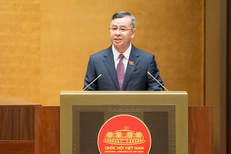 Ủy viên Ban Chấp hành Trung ương Đảng, Tổng Kiểm toán nhà nước Ngô Văn Tuấn trình bày Báo cáo trước Quốc hội. Ảnh: VPQH