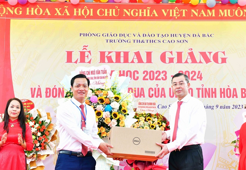 Cùng dự có Ủy viên Trung ương Đảng, Tổng Kiểm toán Nhà nước Ngô Văn Tuấn; Ủy viên dự khuyết Trung ương Đảng, Bí thư Tỉnh ủy Hòa Bình Nguyễn Phi Long; đại diện các Sở, ban, ngành và đông đảo thầy trò Trường TH&THCS Cao Sơn.