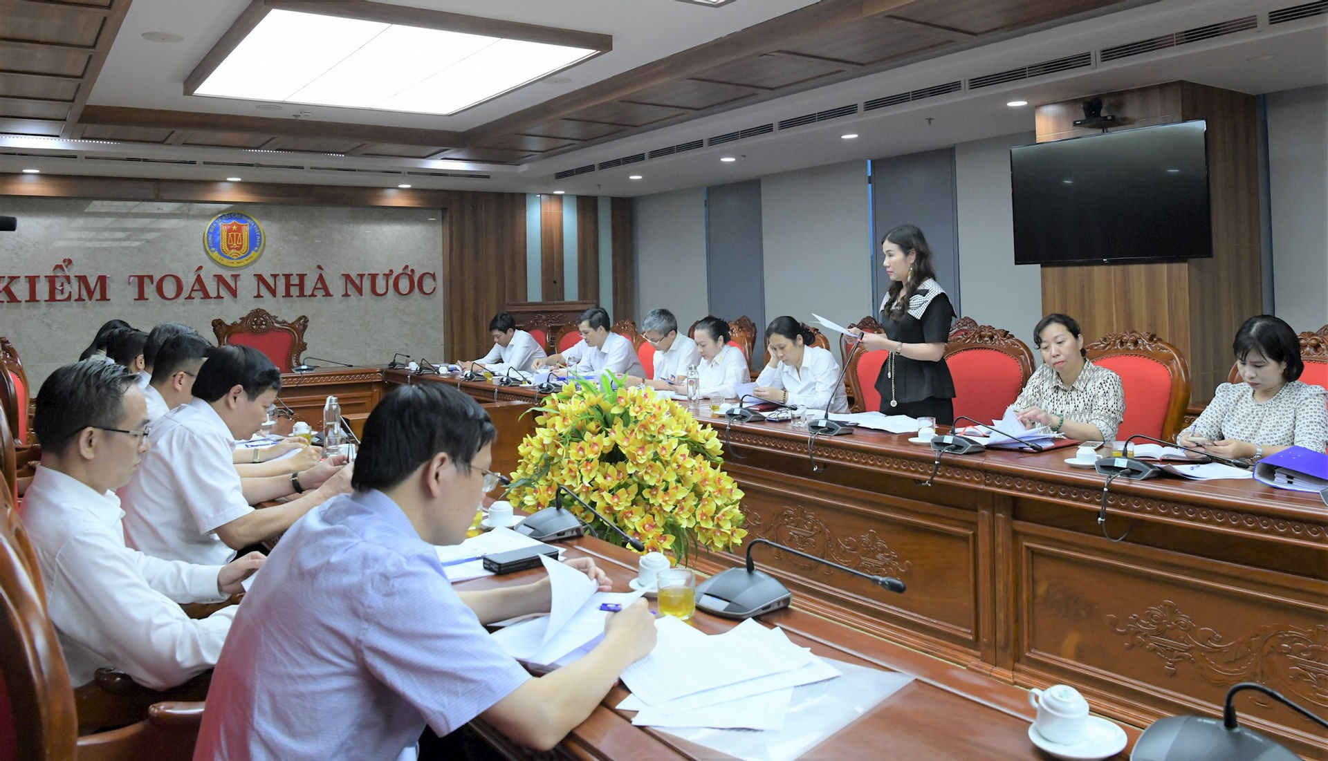 Phó Tổng Kiểm toán nhà nước Doãn Anh Thơ - Trưởng Tiểu ban Nội dung - Thư ký; Phó Tổng Kiểm toán nhà nước Hà Thị Mỹ Dung - Trưởng Tiểu ban Tuyên truyền chủ trì cuộc họp.