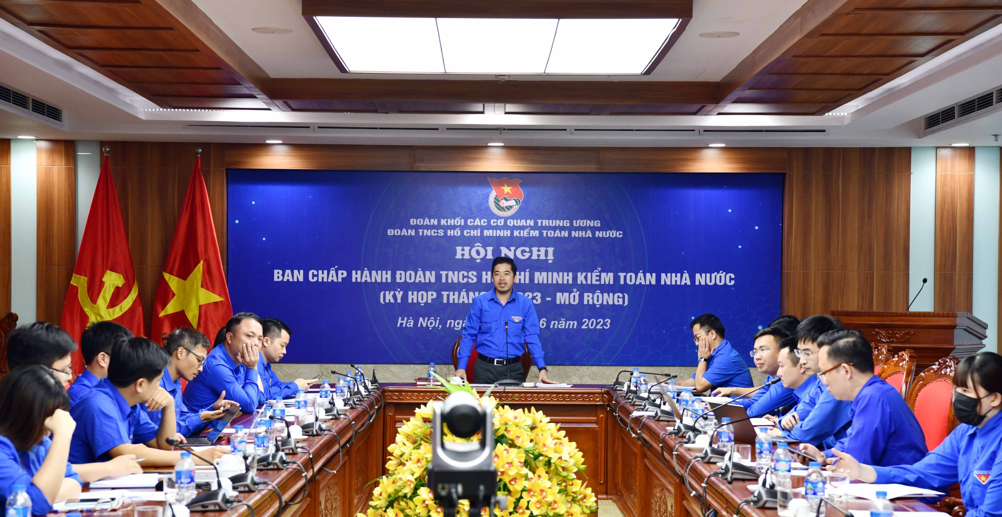 (sav.gov.vn) - Sáng ngày 1/6/2023, tại trụ sở Kiểm toán nhà nước (KTNN) – 116 Nguyễn Chánh, Hà Nội, Đoàn Thanh niên KTNN tổ chức Hội nghị Ban chấp hành mở rộng với sự tham gia của các Ủy viên Ban Chấp hành Đoàn Thanh niên KTNN khóa X, nhiệm kỳ 2022-2027 và các Bí thư Đoàn Thanh niên của 31 cơ sở đoàn trực thuộc KTNN. Hội nghị được tổ chức nhằm đánh giá kết quả thực hiện nhiệm vụ 6 tháng đầu năm và một số nhiệm vụ, giải pháp trọng tâm trong 6 tháng cuối năm 2023. Bí thư Đoàn Thanh niên KTNN Lê Mạnh Cường chủ trì hội nghị.