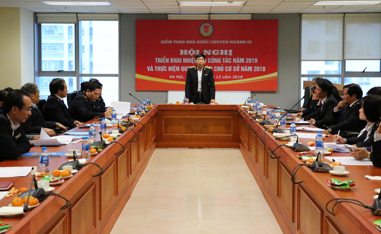 sav.gov.vn) – Sáng 12/12/2018, tại Trụ sở Kiểm toán nhà nước (KTNN), 116 Nguyễn Chánh, Hà Nội, KTNN chuyên ngành III tổ chức Hội nghị triển khai chương trình công tác năm 2019 và thực hiện quy chế dân chủ cơ sở năm 2018. Phó Tổng Kiểm toán nhà nước Nguyễn Tuấn Anh dự và phát biểu chỉ đạo Hội nghị.