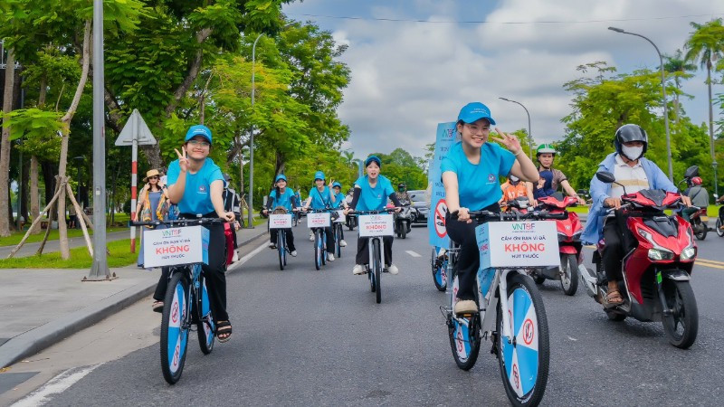Đạp xe tuyên truyền, kêu gọi không hút thuốc tại thành phố Huế